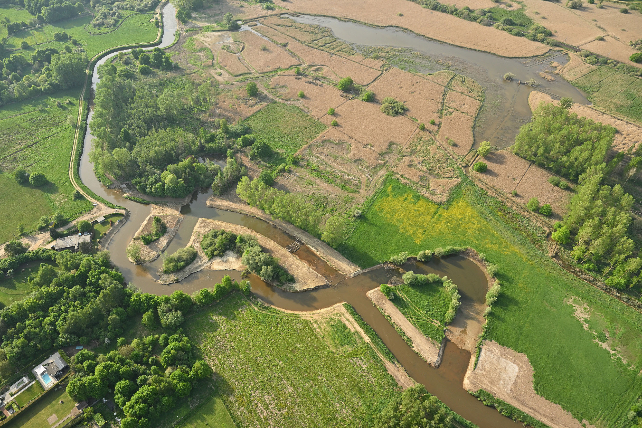 Met 850 hectare natte natuur in opbouw transformeert de vallei geleidelijk in een sponslandschap dat water opvangt bij overvloedige regenval en vasthoudt tijdens droge periodes. In 2025 gingen de eerste natuurinrichtingswerken in het Zammelsbroek effectief van start. Hier ontwikkelen we een open mozaïek van graslanden, rietvelden, ruigtes en waterpartijen die het leefgebied vormen voor soorten als roerdomp, rivierdonderpad, bever en mogelijk ook otter.